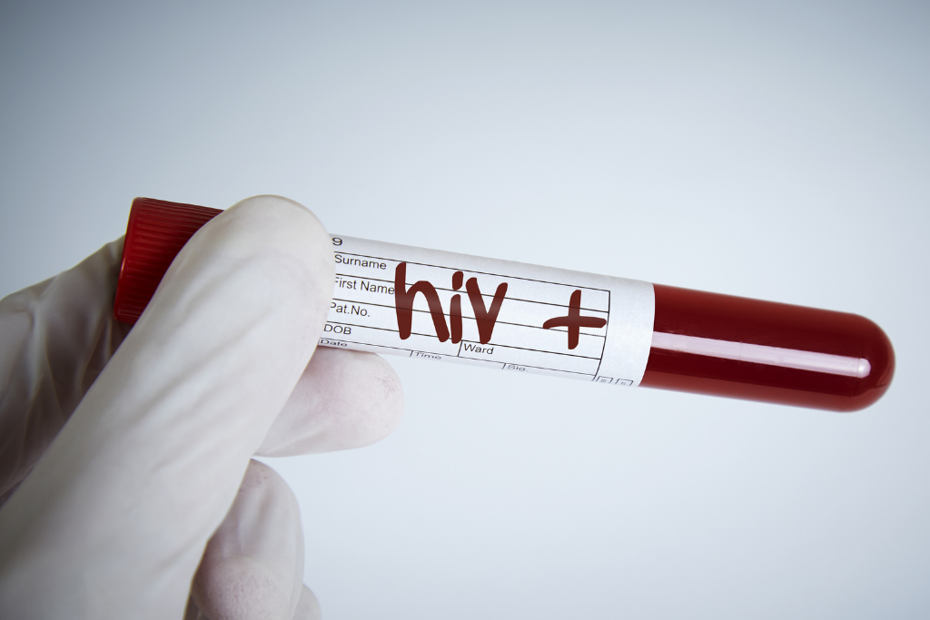 profissional da saúde segura frasco escrito HIV positivo.